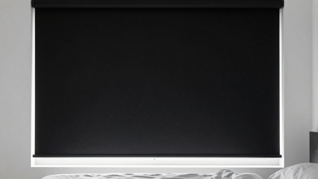 Motorized blackout shades are advanced window treatments that can be easily operated at the push of a button, providing complete darkness when needed. They’re designed to improve your sleep environment by blocking out external light, creating a calm, dark space perfect for rest. Unlike manual shades, these operate quietly and effortlessly, making it simple to adjust your room’s lighting without disrupting your comfort. This convenience is especially valuable for shifting schedules or early risers. With motorized blackout shades, you gain precise control over your environment, ensuring your space is optimized for quality sleep. Color accuracy in light control ensures the room remains consistently dark, enhancing sleep quality. Whether you’re trying to sleep during the day or block out streetlights at night, these shades help you maintain a consistent, restful sleep environment. Additionally, integrating energy-efficient technology can further enhance their sustainability and reduce your overall energy footprint.