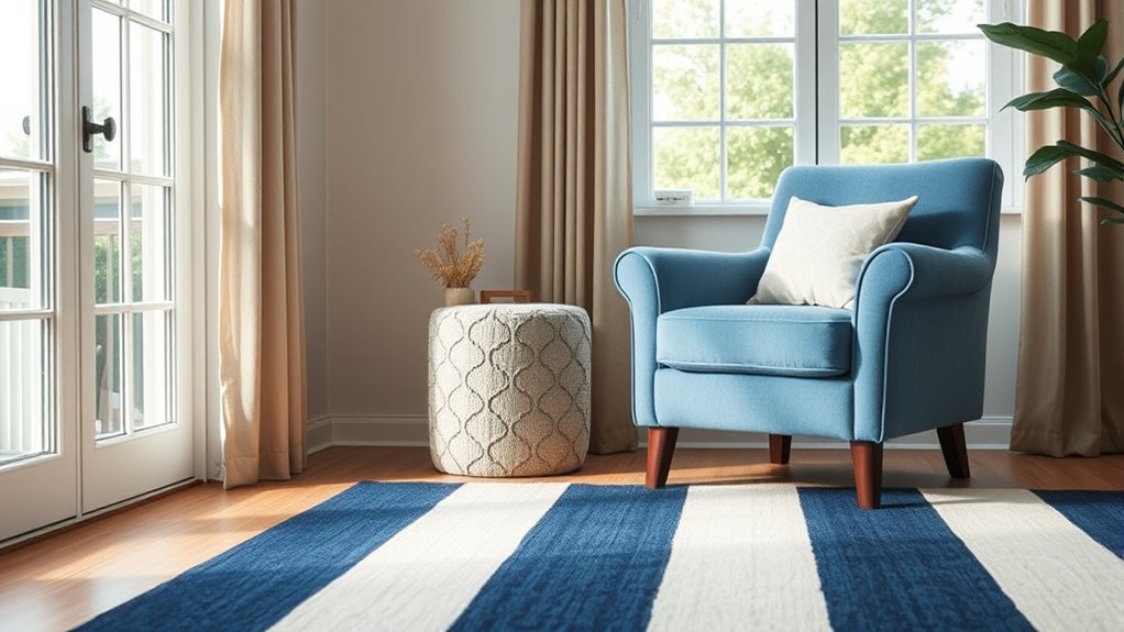 Creating clear pathways through your home is essential for safety and independence, especially for seniors. High-contrast elements help distinguish walkways from surrounding areas and prevent accidents. Use bold, contrasting colors for flooring and walls to create visual boundaries. Incorporate decorative accessories and wall art with distinct patterns or bright frames to guide the eye. Keep pathways unobstructed and well-lit. To enhance visibility, consider adding tactile markers or textured rugs along key routes.