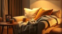 To update your home decor affordably for seniors, focus on simple, cost-effective ideas. You can try DIY painting to refresh walls with calming, easy-on-the-eyes colors that brighten the space. Replace outdated accessories with budget-friendly options or rearrange furniture for a more functional layout. Adding soft lighting and removing clutter also makes the environment more comfortable and accessible, creating a safer, more inviting home without breaking the bank.