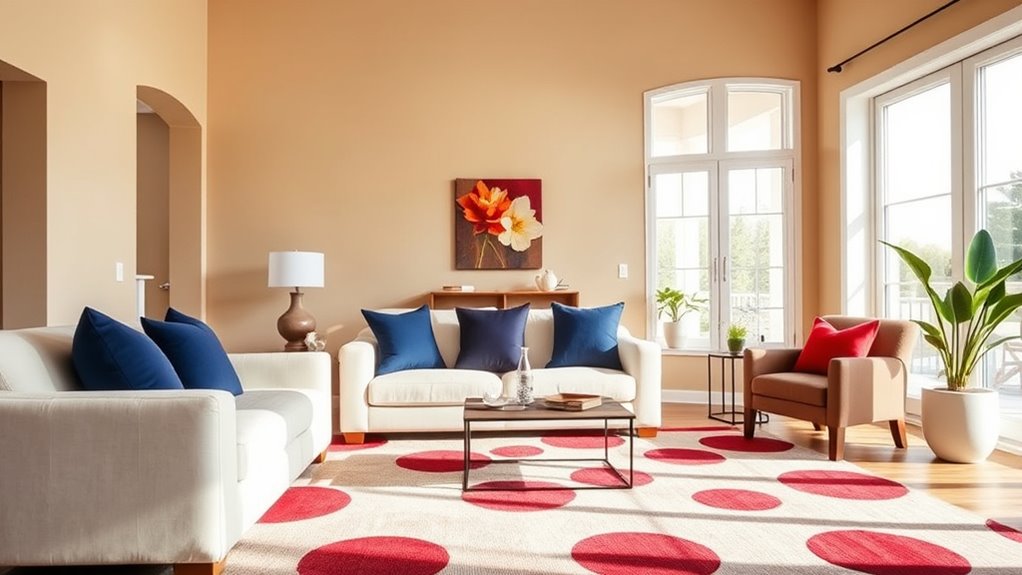 A harmonious and accessible living environment relies on thoughtful design that balances aesthetic appeal with practical functionality. You can achieve this by incorporating vivid color schemes that energize the space without overwhelming, and decorative accents that add personality. Use soft, contrasting tones to highlight pathways and key areas, making navigation easier. Incorporate decorative accents like textured pillows or artwork to create visual interest while maintaining clarity. Keep clutter minimal to promote safety and ease of movement. Here are some ideas to inspire you:
