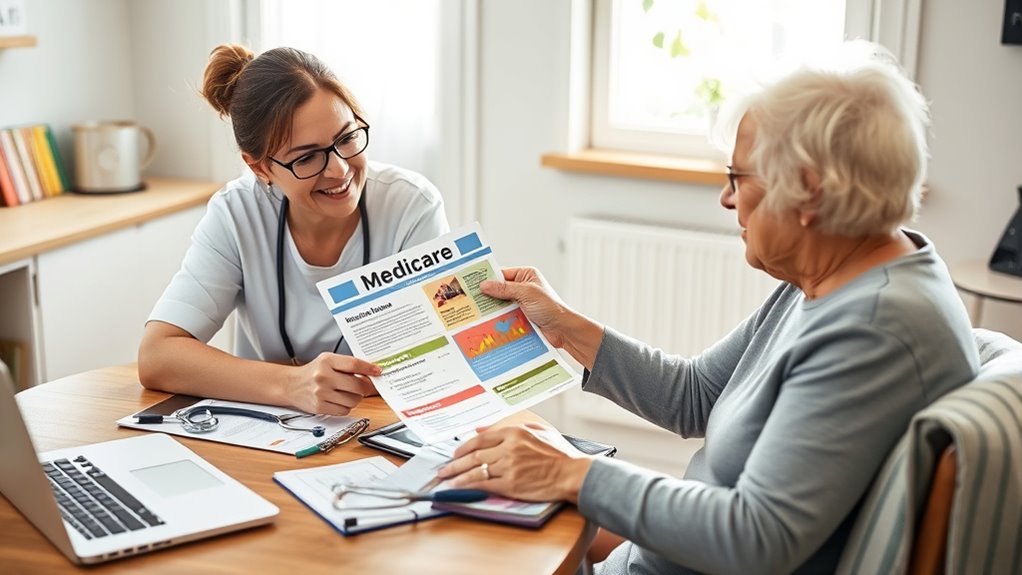 Guiding healthcare as a caregiver involves understanding Medicare and Medicaid, determining eligibility, and choosing the right plans. You’ll need to gather the proper documents, keep track of deadlines, and compare coverage options carefully to find what best fits your loved one’s needs. Support programs and community resources can also ease the process. Managing bills, legal matters, and care coordination are key to ensuring quality and continuous care—more detailed tips await to guide you through each step.
