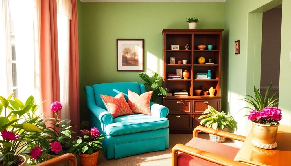 Transform your senior home with vibrant colors to enhance well-being! Embrace calming blues for tranquility, energize spaces with bright yellows, and create a cozy feel with earthy browns. Stimulate appetites with inviting oranges, spark creativity using vibrant purples, and freshen up your areas with crisp whites. Infuse cheerfulness with lively pinks, and add depth through versatile grays. Don't forget to explore nature-inspired palettes for a lively ambiance that feels personal and comforting. Discover more vibrant ideas ahead!