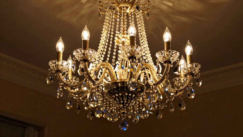 You should clean your chandelier every 3 to 6 months to keep it looking its best. Dirt buildup can distort the true colors, especially under different lighting. Regular dusting helps prevent stain buildup and keeps the crystals sparkling. Remember, gentle stain removal with a soft cloth and mild cleaner preserves the clarity and color accuracy, ensuring your chandelier’s beauty shines through day and night.