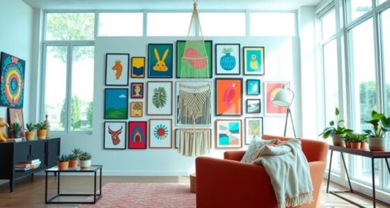 Unlocking the secrets to elevate your home decor with creative wall art is easier than you think! You don't need to be an expert artist. Start by mixing frame styles and sizes, or use risers to create depth in your displays. Repurpose items like fabric scraps or maps for unique pieces that tell your story. By choosing cohesive colors or themes, you can unify your space. Keep exploring, and you'll discover even more innovative ideas to transform your walls!