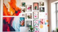 - An eclectic gallery wall, mixing sizes and styles, adds playful energy and depth, showcasing personality through various mediums.