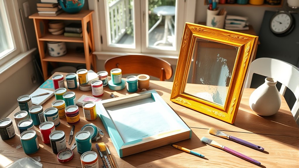 You need a few essential tools for a successful painting makeover. Grab quality paint brushes to guarantee smooth, even strokes, and use painter’s tape to create clean edges and protect trim. A paint roller can help cover large areas quickly, while drop cloths keep your space tidy. Don’t forget a stir stick and a small paint tray. With these tools, you’ll achieve professional-looking results on your budget DIY project.