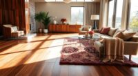 You'll find that hardwood's timeless beauty and durability appeal to many, while the unique elegance of natural stone adds luxury to any space.