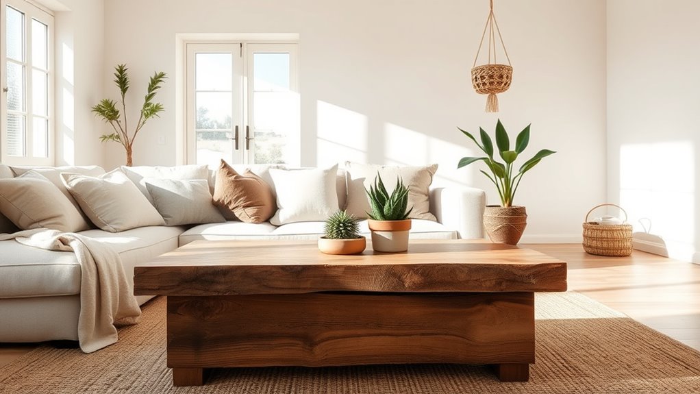 Ever wondered how to spot genuinely eco-friendly furniture brands? Look for certification labels like FSC or GREENGUARD, which confirm sustainable practices. Check if the brand emphasizes transparency in their sourcing and manufacturing processes—do they openly share their supply chain info? By paying attention to certification labels and brand transparency, you guarantee your choices support truly eco-conscious companies, helping the environment while creating beautiful, sustainable spaces.