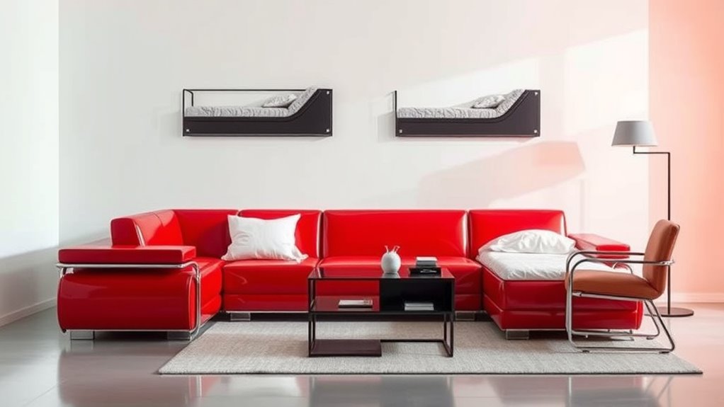 Isn’t it inspiring to think your space can reflect your personality? You’ll love customizing these pieces with various color options and style variations, making them truly yours. Many convertible furniture pieces offer versatile customization, allowing you to choose everything from sleek modern to cozy traditional looks. So, whether you prefer bold hues or subtle tones, these adaptable designs let you personalize your room effortlessly, turning functionality into a statement of your unique style.