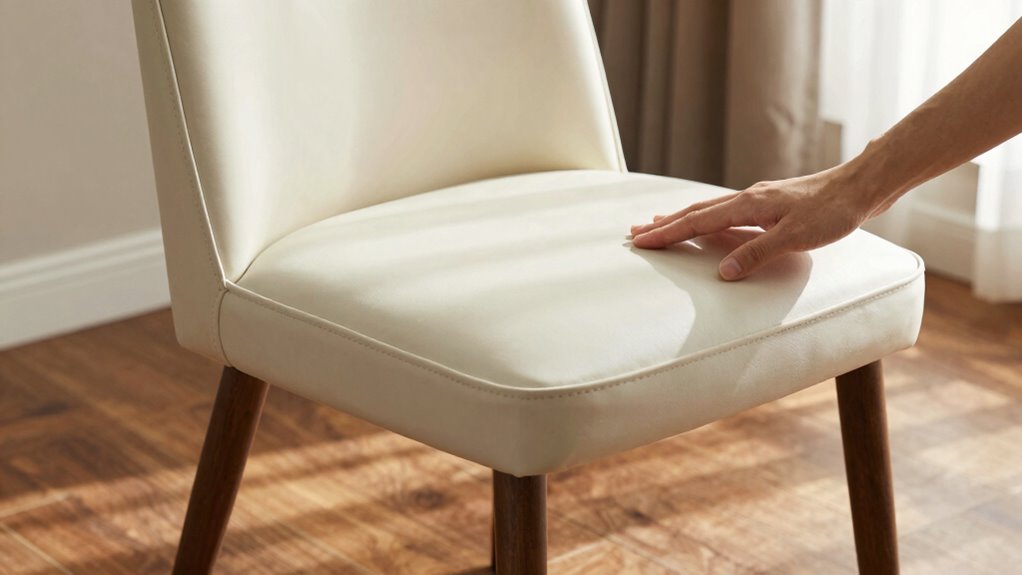 You can also do a quick stability test by gently rocking the chair side to side or front to back. If it wobbles or feels unstable, it’s a sign that its material durability might be compromised. Keep in mind that a durable, well-constructed chair not only lasts longer but also provides better support, ensuring you remain comfortable during mealtime.
