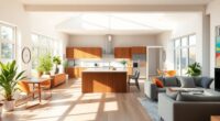Incorporating natural light sources can also elevate your home's aesthetic. Strategically placed windows or skylights can bring in an abundance of natural light, which works beautifully alongside your artificial lighting. Pairing natural light with ceiling fixtures fitted with LED bulbs won't only enhance the ambiance but also protect your art over time. LED bulbs emit no UV radiation and produce minimal heat, making them a smart choice for preserving your beloved pieces. Additionally, consider the benefits of heat pump efficiency when planning your lighting layout, as it can influence the overall energy consumption of your home.