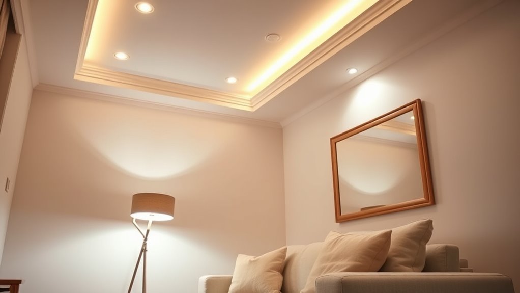 Did you know that smart lighting can boost room perception by up to 30%? When you use smart lighting, you control brightness, color, and placement, making your small space feel larger. Adjusting lighting zones and schedules creates an illusion of openness, enhancing your room’s spaciousness. With smart lighting, you actively shape your environment, making your small room feel more inviting and expansive.