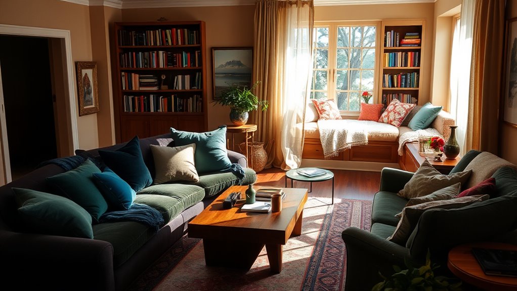 Creating a cozy living space with conversation pits or reading nooks makes your home inviting and unique. Did you know that homeowners who prioritize cozy corners report 30% higher satisfaction with their living environments? By incorporating these layout ideas, you turn your space into a warm retreat where you can relax, read, or chat comfortably. So, go ahead—design that perfect nook and enjoy a more intimate, cozy atmosphere that truly feels like home.