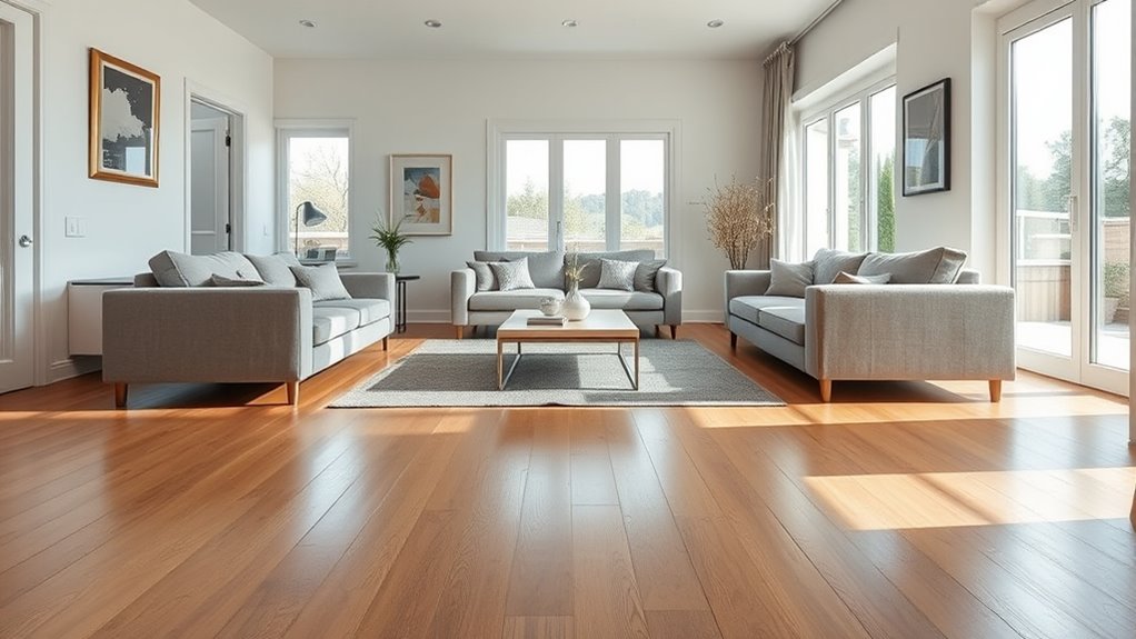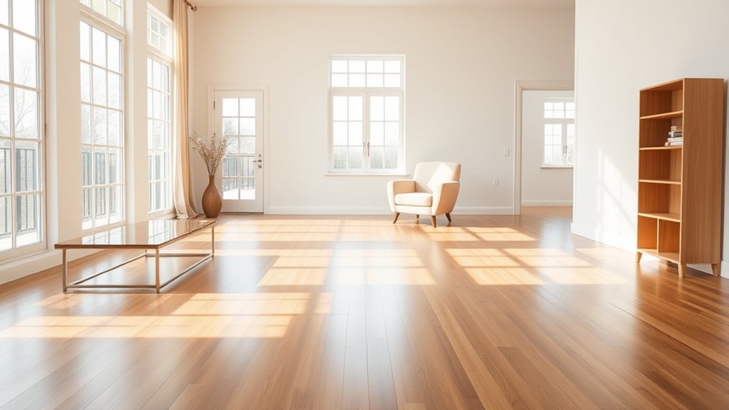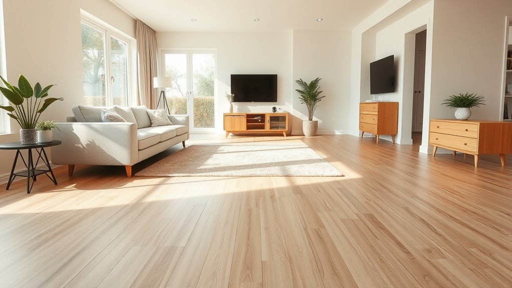 Choosing the right flooring is like laying a safe path through your home. For slip-resistant tiles, look for textured surfaces that grip well, especially when wet. Anti-slip vinyl is another great option; it’s durable and provides excellent traction. These materials help prevent falls and keep your space safe. Prioritize slip resistant tiles or anti-slip vinyl to make your living environment both stylish and secure for everyone.