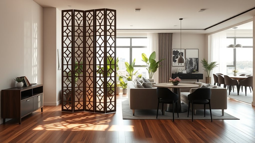 Think of room dividers as your personal toolkit for creating harmony in your space. With a simple move, you can reshape your environment, turning chaos into calm or privacy into openness. Just like a skilled conductor guides an orchestra, you can orchestrate your room’s vibe with these versatile pieces. Embrace their flexibility, and watch your space transform effortlessly—your perfect harmony is just a divider away.