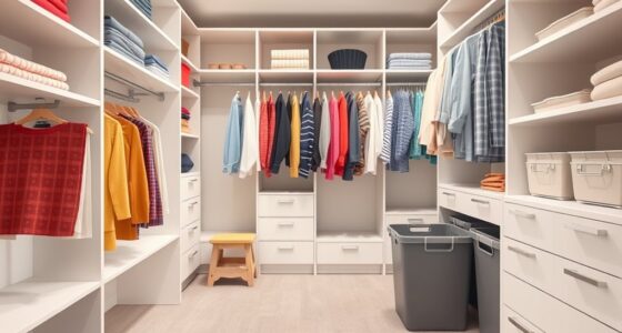 Unlocking the secrets to an organized space starts with smart strategies. Utilize vertical space by installing floating shelves and incorporate multi-functional furniture like storage beds and sofa beds. Regularly declutter to keep only what you need and use under-bed storage solutions for seasonal items. Don't forget about hooks and racks to create specific zones for activities. These tips can transform your environment, making it more functional and stylish. Discover even more ways to enhance your organization as you explore further!