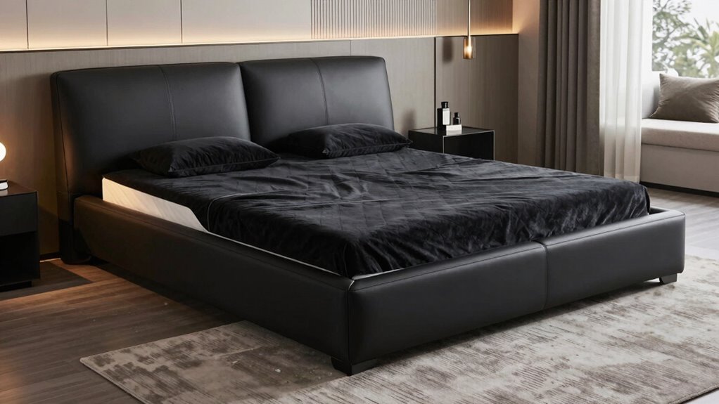 Built-in comfort features can considerably enhance your sleep experience by providing personalized relaxation options. Features like massage modes, zero gravity positioning, and preset memory positions let you customize your bed for ultimate comfort and stress relief. Adjustable head and foot inclines help you find the perfect angle for sleeping, reading, or lounging. Integrated USB ports and LED lighting add convenience, making it easy to charge devices and see in the dark. Many models also come with remote controls or smartphone apps, allowing you to adjust settings effortlessly from a distance. Additionally, adjustable height legs and customizable positioning help tailor the bed to your preferences and improve bedroom ergonomics. These features combine to create a truly personalized and relaxing sleep environment.