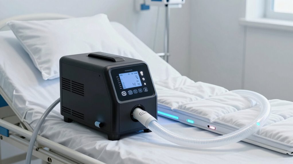 Selecting the right power source for an alternating pressure mattress pump system is essential because it directly affects the device’s reliability, portability, and convenience. AC adapters provide continuous, dependable operation, making them ideal for stationary settings like hospitals or clinics. If mobility isn’t a priority, an AC-powered pump guarantees consistent therapy without interruption. On the other hand, battery-powered systems offer greater flexibility, perfect for home care or emergencies during power outages. Rechargeable batteries vary in capacity, with some lasting just a few hours and others running all night, depending on their size. Battery indicators help monitor charge levels to prevent unexpected downtime. Ultimately, your choice depends on whether you prioritize steady, long-term use or mobility and convenience for short-term or portable care needs.