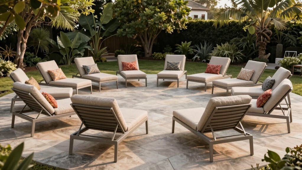 If you’re searching for the 15 best aluminum outdoor chaise lounge sets for 2026, I’ve compiled top options that combine durability, comfort, and style. These sets feature weather-resistant aluminum frames, adjustable recline positions, and easy-to-move designs perfect for any outdoor space. Whether you prefer sleek modern finishes or plush cushions, there’s something for everyone. Keep exploring further to discover detailed reviews and expert tips to help you choose the perfect set for your outdoor oasis.