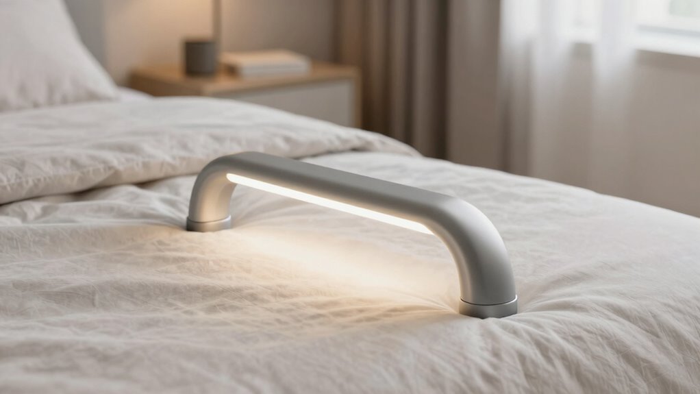 Choosing a durable bed rail handle with light means paying close attention to the materials used in its construction. I look for high-quality steel or durable alloys because they provide long-lasting support and resist wear over time. It’s also important that the materials have corrosion-resistant coatings or finishes, which help them withstand moisture and cleaning agents without rusting. I prefer surfaces that are easy to wipe clean, reducing dirt and bacteria buildup. The weight of the material matters too—lightweight yet sturdy metals make installation easier without sacrificing strength. Lastly, I check that the handle grip is made from non-slip, ergonomic materials to ensure robustness through frequent use. These factors help me choose a handle that’s reliable, low-maintenance, and built to last.