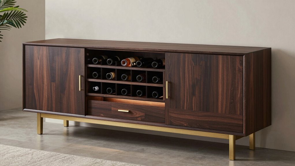 I find that many buffet cabinets with wine storage include security features like lockable doors or drawers, which give me peace of mind. Some models even have electronic locks or keypads for added security, especially for valuable bottles. I recommend checking specific products to see what security options they offer, since features vary. Prioritizing a lockable cabinet helps me protect my wine collection from theft or accidental mishandling.