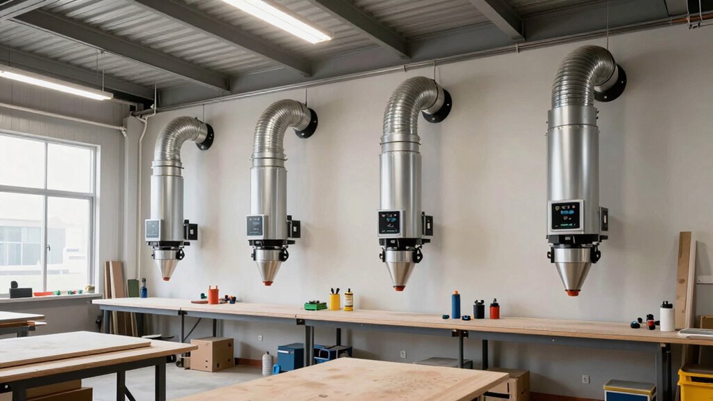 Selecting a dust collection system involves more than just matching airflow capacity; filtration efficiency plays a key role in maintaining healthy indoor air quality. The filter’s ability to trap airborne particles is measured by standards like MERV or HEPA, with higher ratings indicating better performance. HEPA filters and MERV-13 or above can remove 99.97% of particles as small as 0.3 micrometers, which is crucial when working with fine woodworking dust or other tiny particulates. However, higher-efficiency filters may slightly restrict airflow, so it’s important to find a balance between filtration and system performance. Regular maintenance and prompt filter replacement are essential to sustain filtration efficiency over time, ensuring the system continues to protect your indoor air quality effectively.