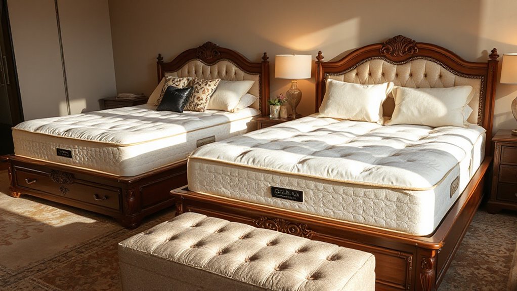 Supporting proper spinal alignment is essential for a restful night’s sleep, especially with a king pillow top pocket coil mattress. These mattresses evenly distribute body weight, preventing pressure points and sagging that can misalign your spine. The pocket coil system contours to your body’s shape, providing targeted support where you need it most. The pillow top layer adds plush comfort without sacrificing support, helping keep your spine in a natural, healthy position. Reinforced coil edges ensure consistent support along the perimeter, reducing the risk of rolling off and maintaining good posture throughout the night. Proper support and alignment not only prevent discomfort but also promote healthier sleep habits. Choosing a mattress with these features guarantees you wake up refreshed and free of aches.