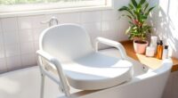 Choosing the right leg exerciser for the elderly is essential for guaranteeing safety and promoting effective workouts. First, I always look for non-slip foot pedals and a stable construction to prevent any slipping, especially for seniors with mobility issues. A smooth, quiet operation is also important; it allows for comfortable use without disturbing others. I prefer models with adjustable speed settings so users can customize their workout intensity based on their fitness level. A compact design is critical, too, as it fits easily under desks or in tight spaces, enhancing accessibility. Finally, I verify the exerciser includes a remote control or an easy-to-use interface to minimize bending or reaching, greatly reducing the risk of falls.