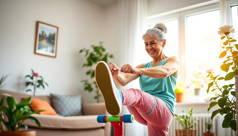 If you're looking to stay active and strong as you age, leg exercisers like the YOSUDA Under Desk Elliptical and LegXercise are excellent choices. They offer adjustable resistance levels and quiet operation, making them perfect for home or office use. You won't have to worry about assembly since they're usually fully assembled upon purchase. Plus, they cater to various fitness levels and enhance circulation. Stick around to discover more options that could fit your lifestyle.