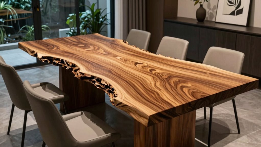 Choosing the perfect live edge dining table is like discovering a hidden gem in a lush forest—each piece telling its own story. As you consider your options, remember that the right table brings warmth and character, much like an ancient tree standing proud through the years. Trust your instincts, and you’ll find a piece that turns your dining space into a timeless sanctuary—where memories are made beneath the natural beauty of wood.
