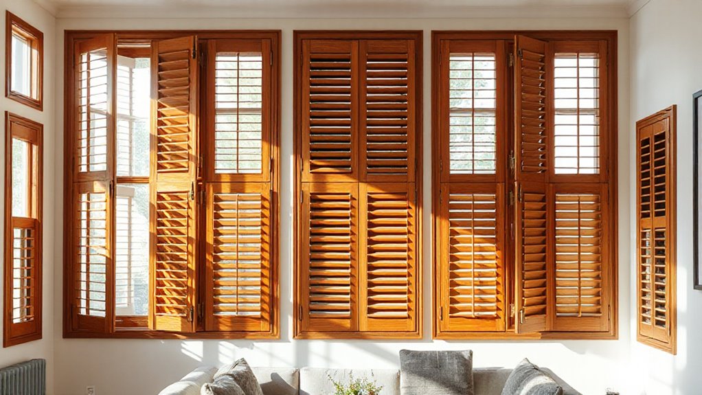 I’ve found the 15 best plantation shutter panels for indoor use in 2026, including options like vinyl shutters in black, custom basswood designs, motorized models, and waterproof varieties. They come in various sizes, finishes, and styles to match any decor and needs. Whether you prefer traditional, rustic, or modern looks, there’s something for everyone. If you want to discover more about each option and their features, keep exploring the details below.