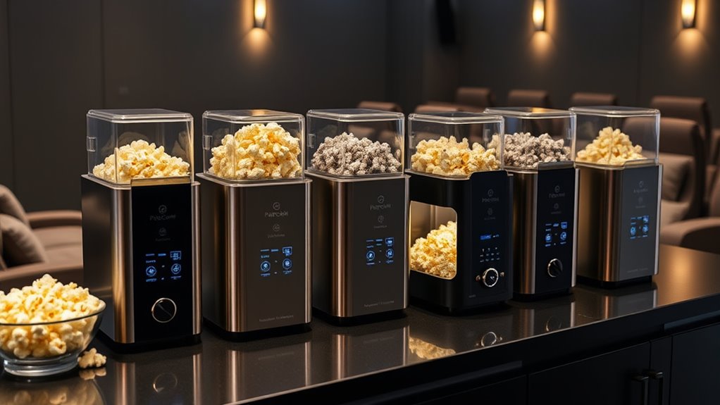 Just like the magic of a classic movie night, choosing the right popcorn maker transforms your home theater experience. Whether you crave the vintage charm or modern convenience, there’s a perfect machine for you. Think of it as your personal popcorn genie, turning kernels into cinematic magic. So, pick your favorite and let the popping begin—because every great film deserves great popcorn, and every great popcorn maker makes that possible.