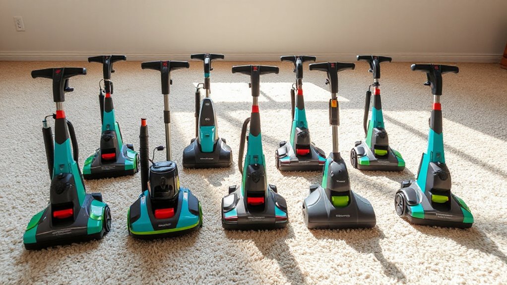 Suction power levels are a crucial factor to contemplate when selecting a portable carpet spot cleaner with high performance. Higher suction, around 15Kpa to 20Kpa, effectively lifts embedded dirt and stains, ensuring a deep clean. It also helps carpets dry faster by extracting more moisture during the process. However, increased suction usually means a more powerful motor, which can add weight and consume more energy. This might make the device less portable or more costly to operate. The right suction power enhances the machine’s ability to remove stubborn stains deep within fibers, greatly improving cleaning results. Still, it’s essential to balance suction strength with other features like water capacity and brush effectiveness to achieve ideal overall performance and convenience.