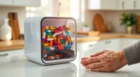 Finding the right magnification strength is just the beginning; lighting features can greatly enhance the reading experience for elderly users. I always recommend looking for magnifiers with adjustable lighting, like multiple brightness settings, to fit various environments. Energy-efficient LED lights are a must—they provide bright illumination while minimizing eye strain. I also prefer models that offer different color modes, such as warm or cool light, which help reduce glare and improve visual comfort for sensitive eyes. Built-in dimming capabilities let users customize light intensity to their needs. Finally, verify the magnifier has sufficient lighting coverage, with strategically placed LEDs to illuminate the entire reading area without creating shadows. This will make reading a much more enjoyable experience!