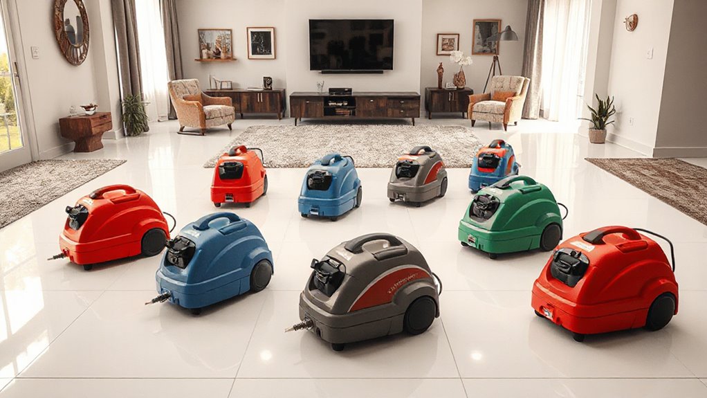 These machines pack impressive cleaning power, easily tackling dirt deep in rugs, and they’re surprisingly user-friendly. I found that their lightweight design and straightforward controls make operation simple, even for beginners. While some worry about effectiveness, I was amazed at how well they removed stains and refreshed my carpets. Plus, their compact size means I can maneuver them with ease, making rug cleaning less of a chore and more of a quick, satisfying task.